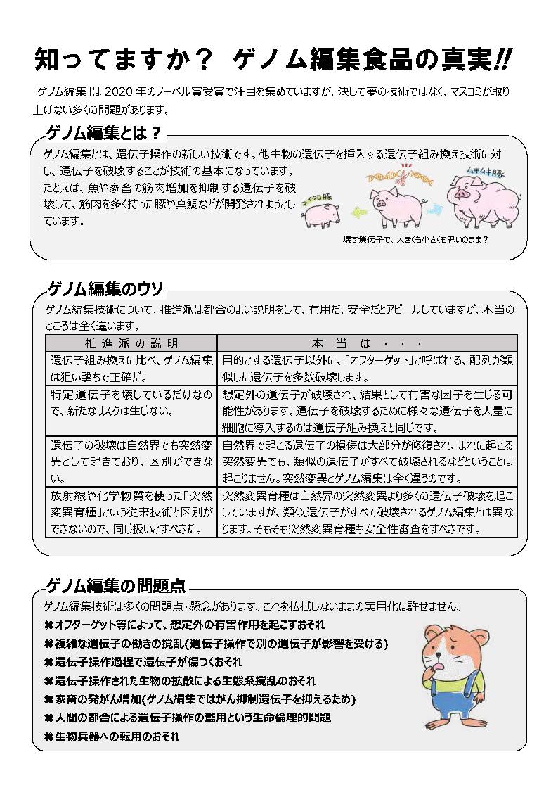 【チラシ】ゲノム編集食品の問題が一目でわかります(2021年4月30日)