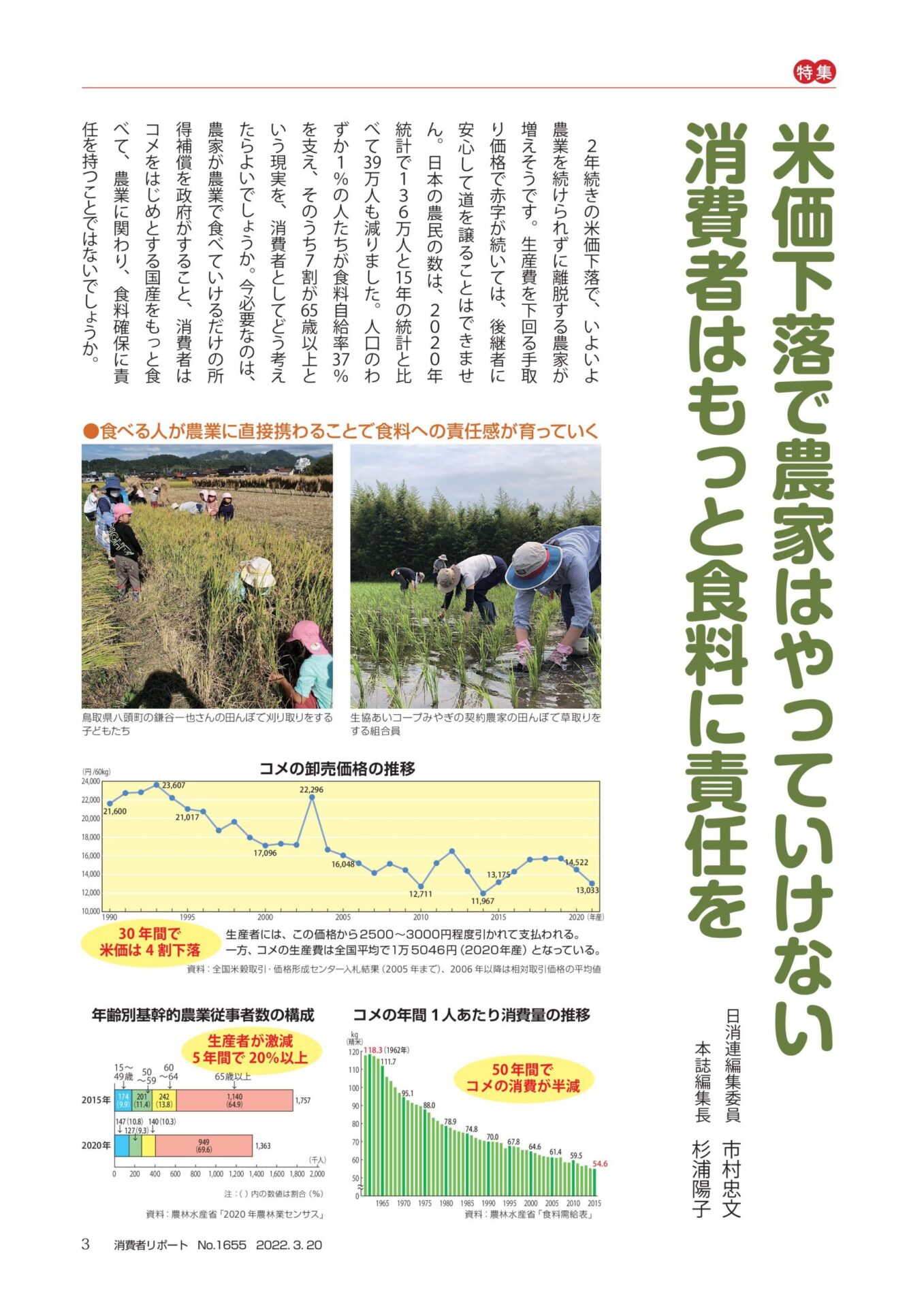 米価下落で農家はやっていけない消費者はもっと食料に責任を